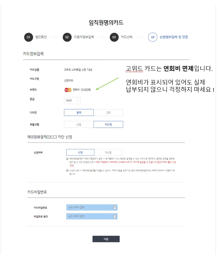 • 임직원명의 카드는 비로그인 상태에서만 신청이 가능해요!