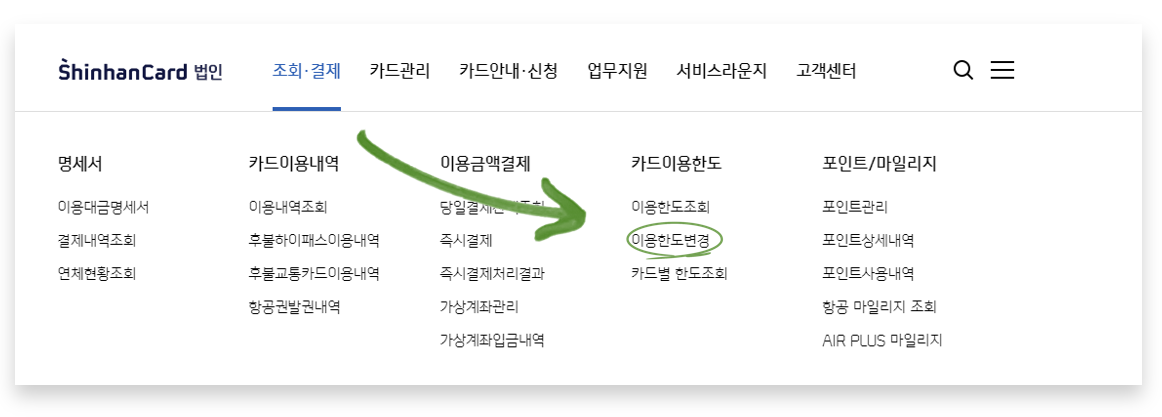 신한 법인카드 홈페이지로 직접 접속하시는 경우, 아래 이미지를 참고해주세요.