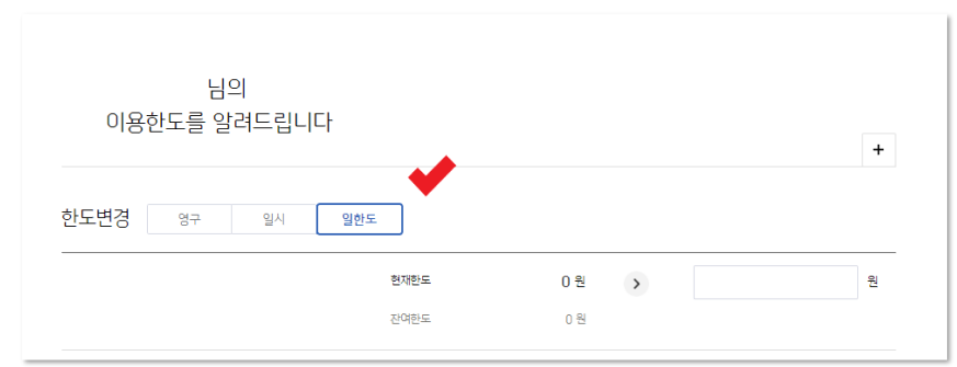 [카드사 홈페이지]를 클릭하시면 [이용한도 변경] 페이지로 접속됩니다.