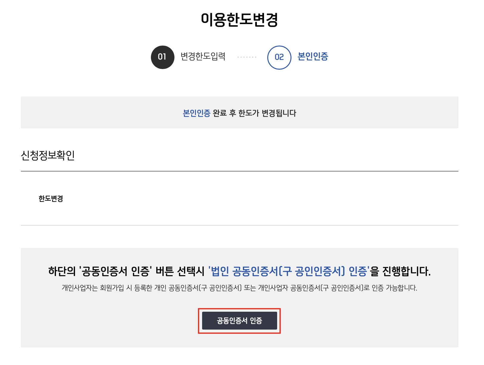 한도변경 방법 [영구] / [일시] 중 선택하여 변경