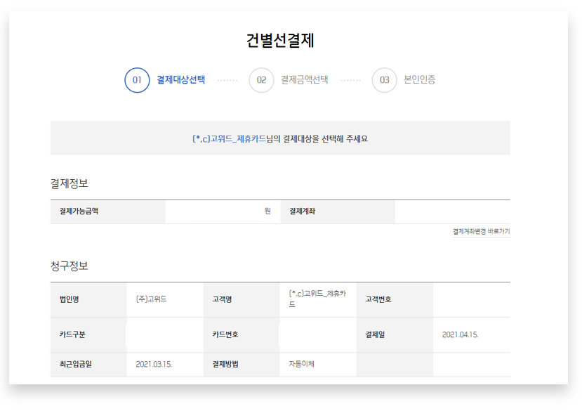 결제대금일(15일)에 해당 서비스를 이용하면, 이중인출이 발생할 수 있습니다.
