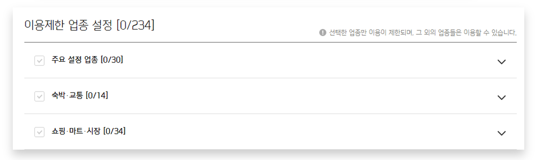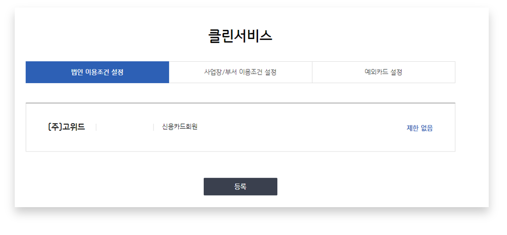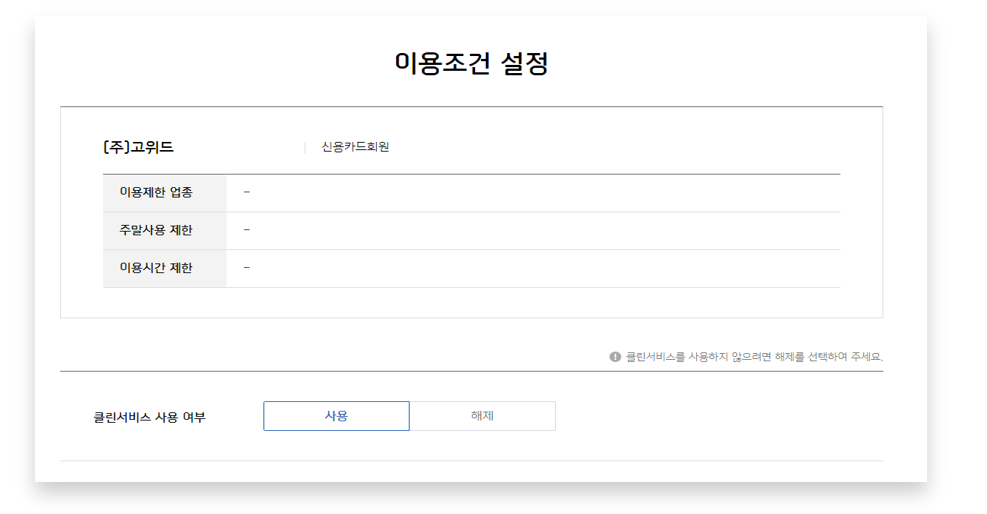 특정 가맹점 사용을 제한하는 서비스로 업종 또는 승인 시간 제한을 등록하여 법인카드를 관리하는 부가서비스 입니다.