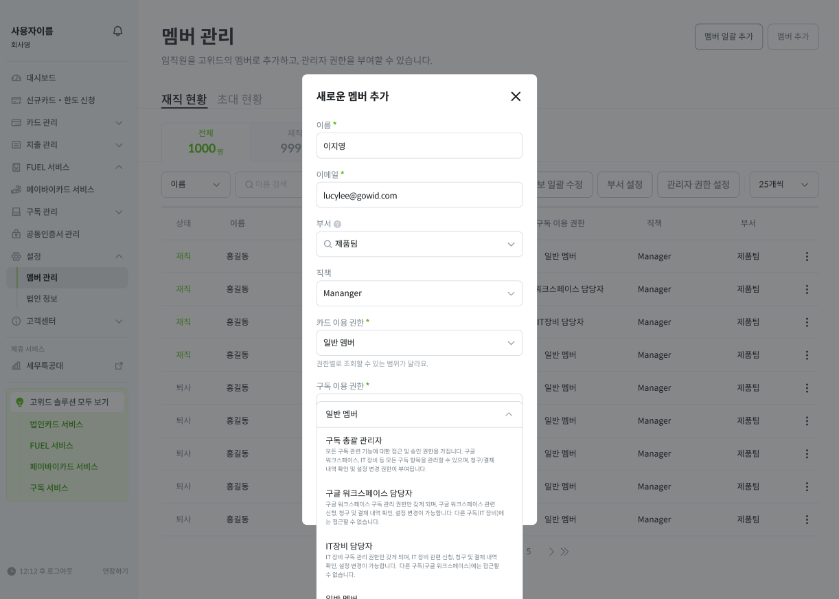 멤버 권한에 구독 이용 권한이 추가되었습니다.