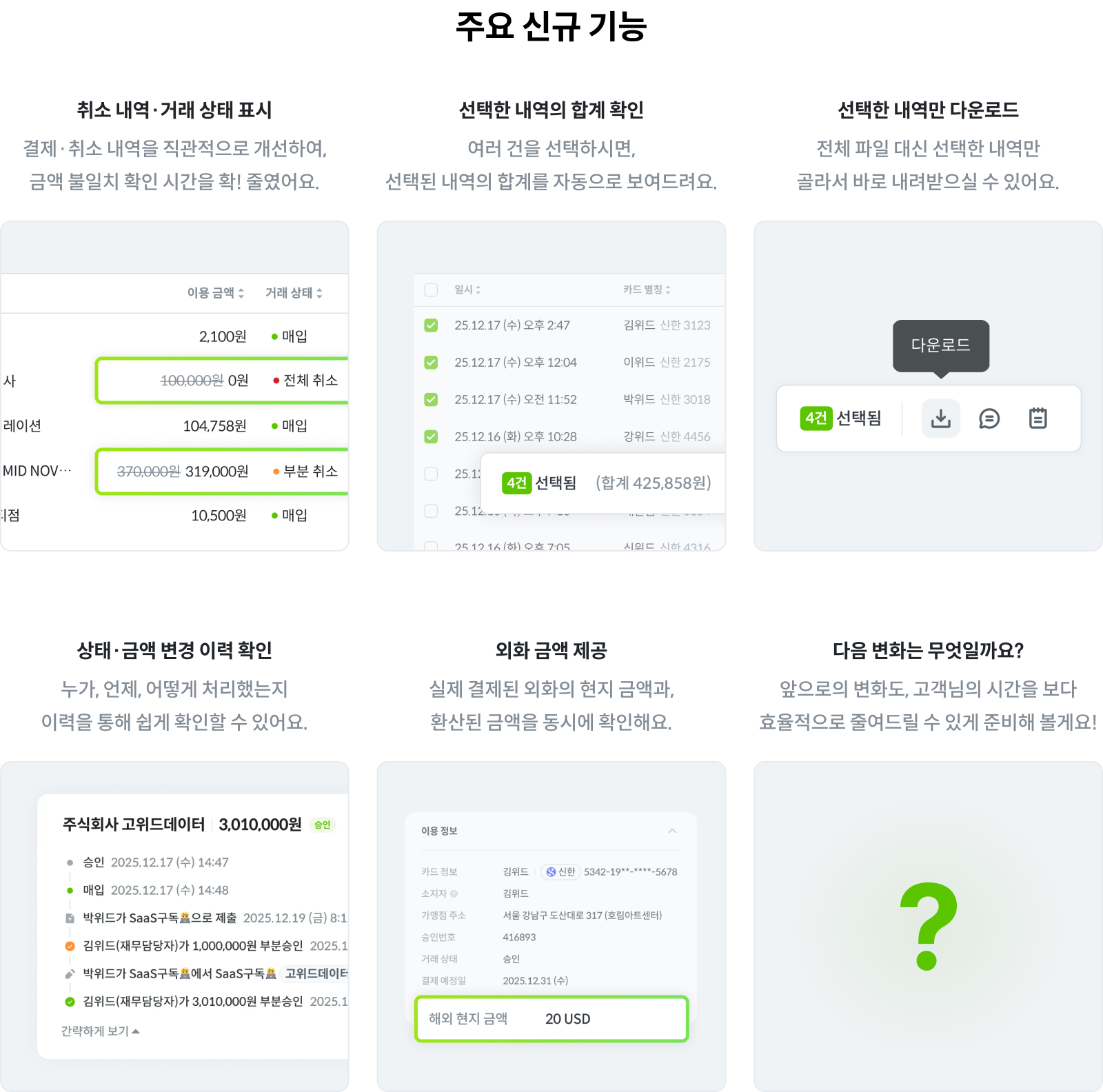 고위드가 계산하던 방식에서 카드사 원천 데이터를 그대로 보여주는 방식으로 변경됩니다.