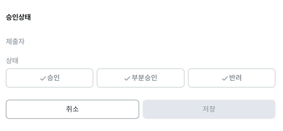 하단 승인상태 영역에서 해당 영수증에 대한 승인, 부분승인 및 반려를 할 수 있습니다.