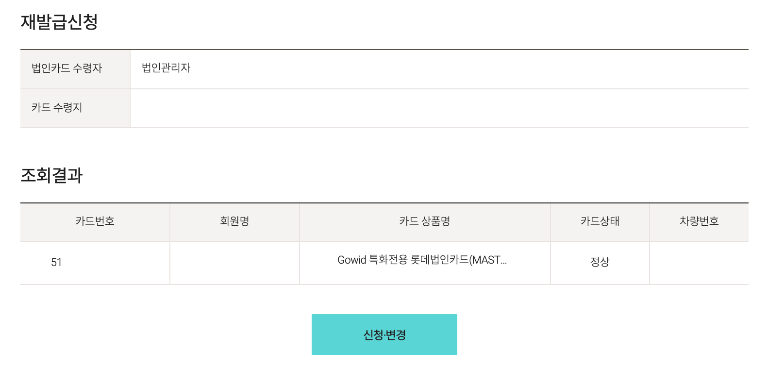 재발급할 카드 번호 입력