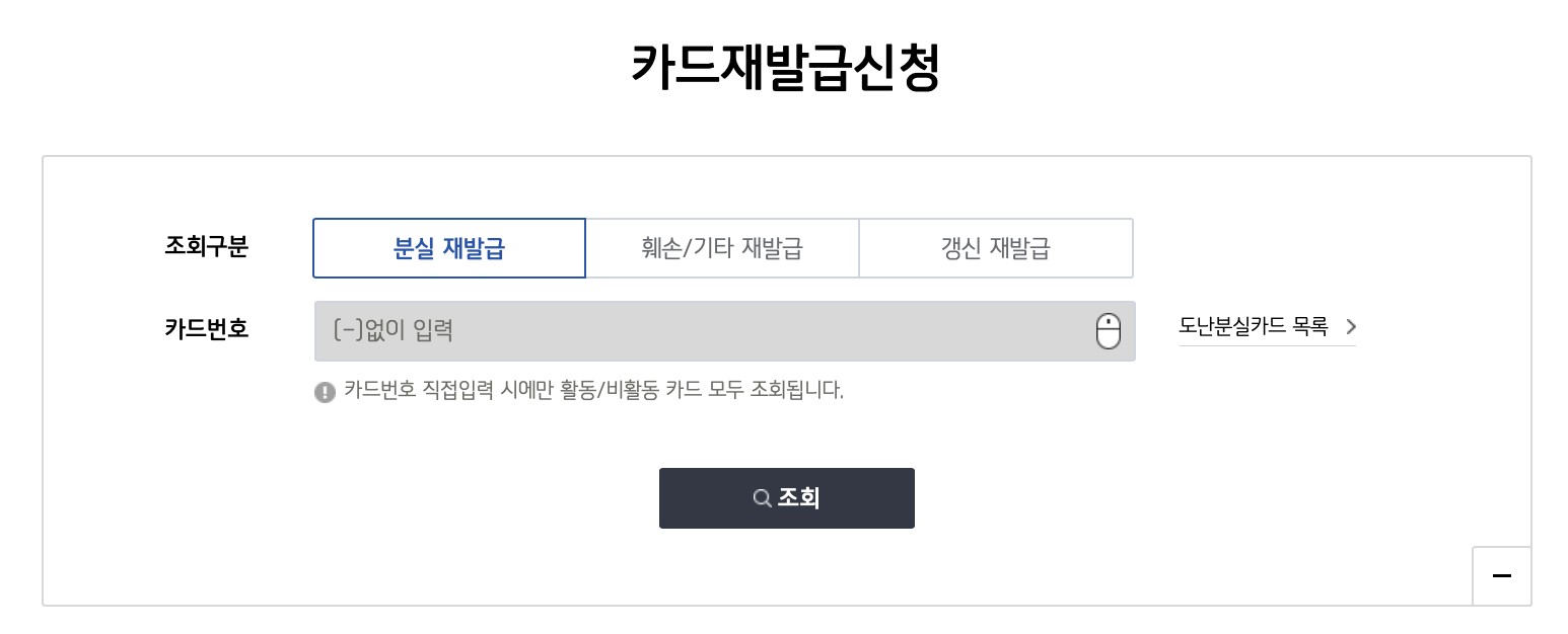 분실카드 재발급 : 분실 및 도난 신고시