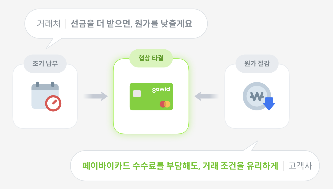 고객사는 카드 결제로 지출이연 효과를 얻었으니, 거래처에 선금 조건을 높게 걸어서 원가 협상을 하시는 것을 권장드립니다.