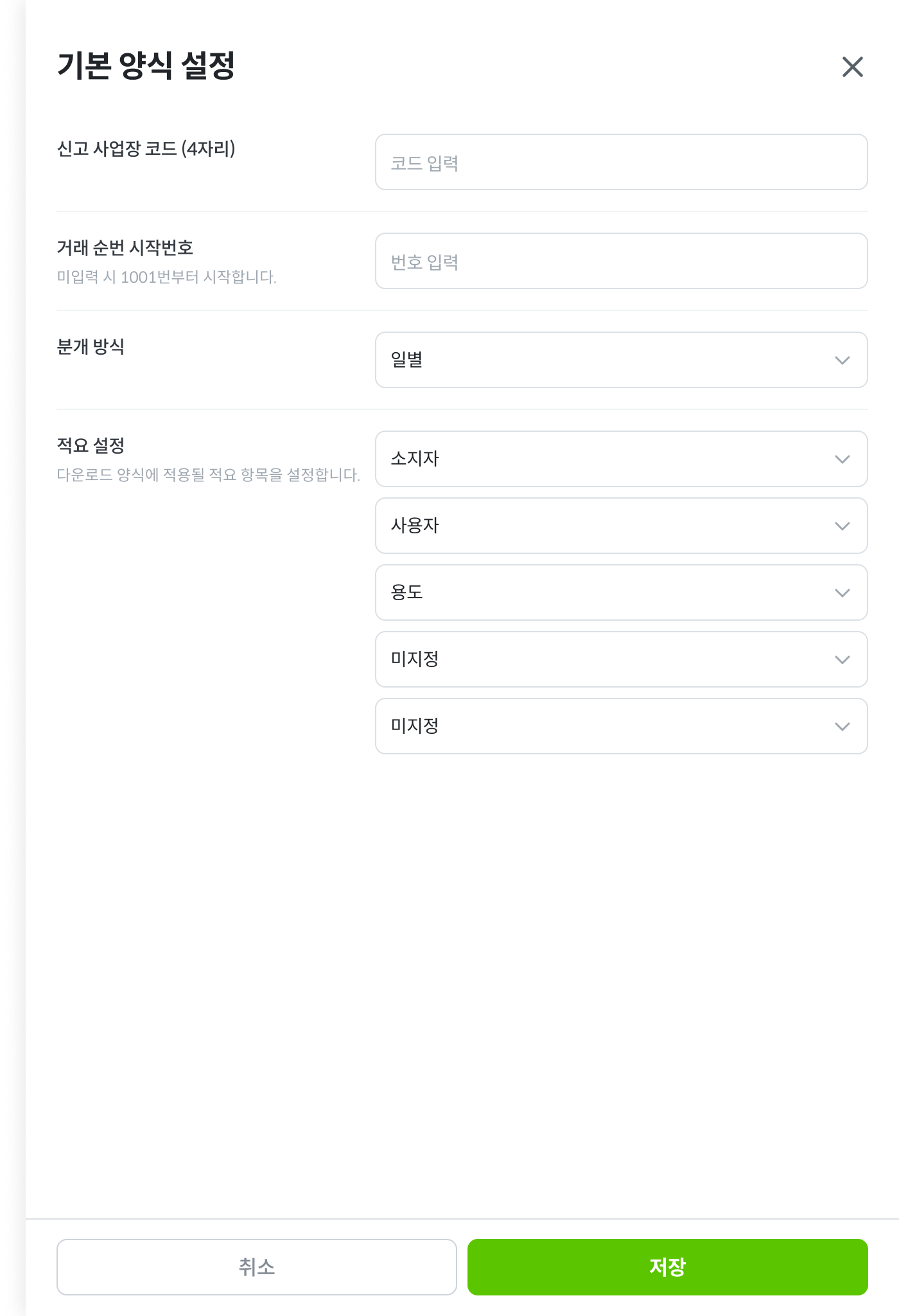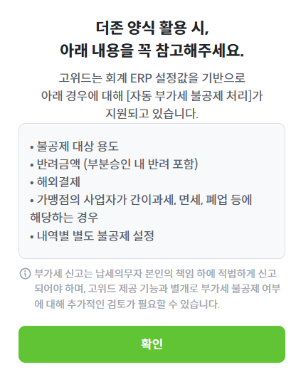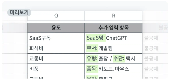 양식 생성 자동화를 위해 용도별 불공제 여부 및 회계코드 설정 등은 필수적입니다.