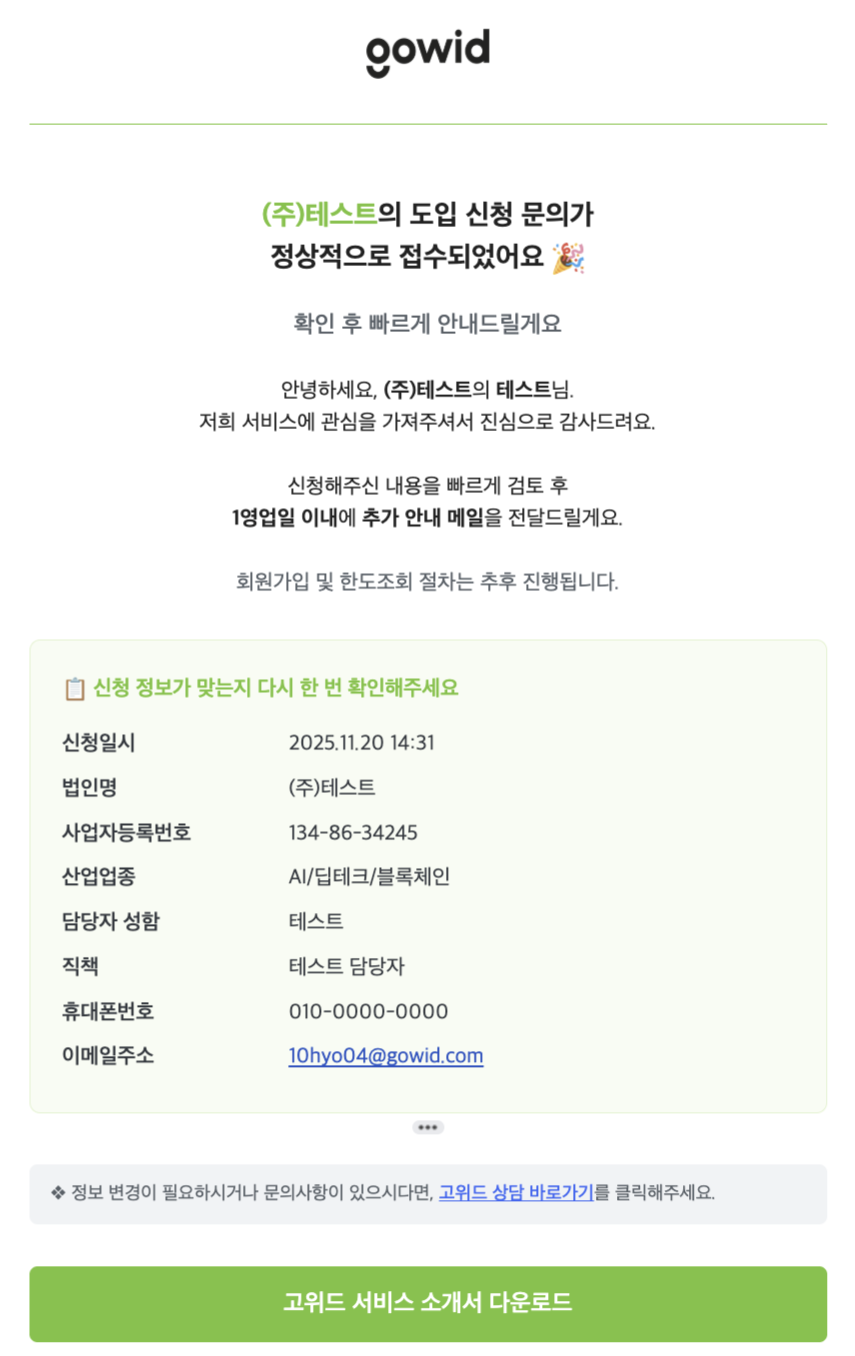 정상 접수 메일이 전송됐는지 확인해주세요! 승인 결과는 기재하신 이메일 주소로 안내 드립니다.