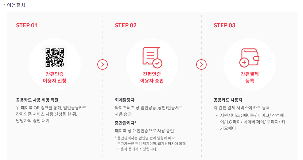 법인 공용카드로 간편결제 서비스 이용할 수 있습니다.