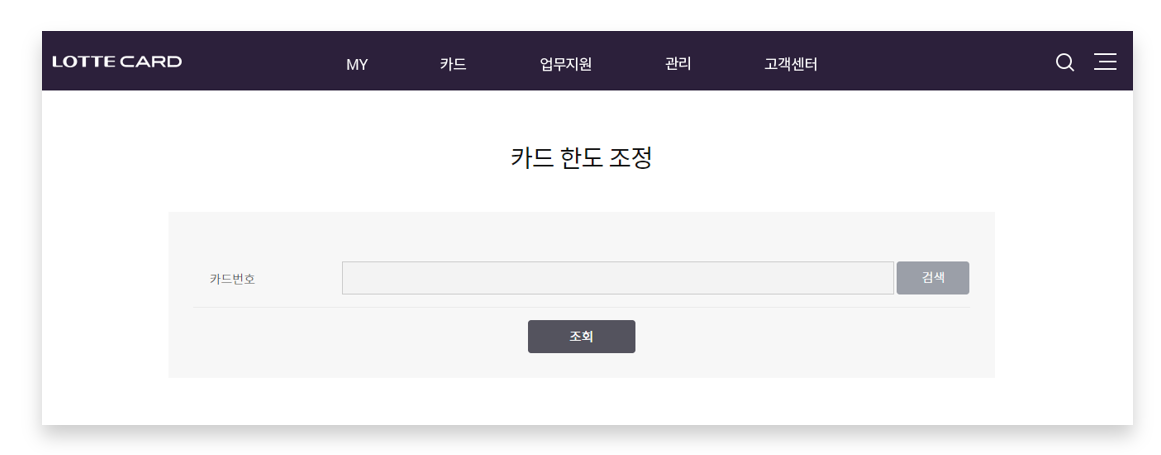step 4 관리자 로그인 후, 상단 [MY] → [카드 한도 조정] 클릭
