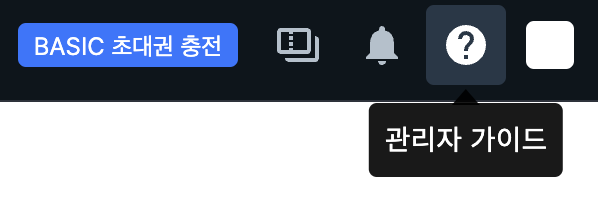 평가 서비스 이용을 위한 관리자 가이드는 비즈니스 페이지 우측 상단 '?' 아이콘을 클릭하여 확인할 수 있습니다.