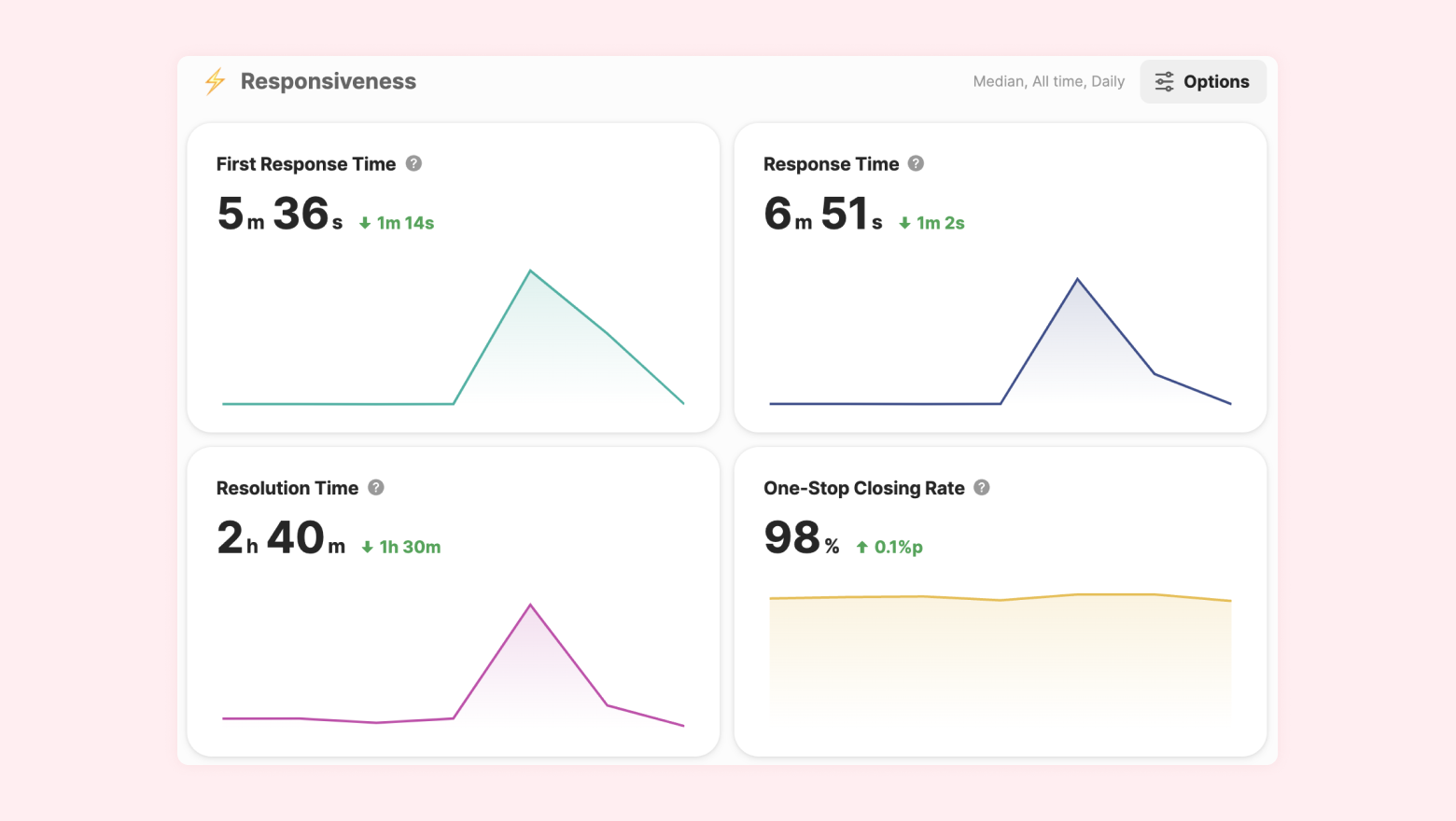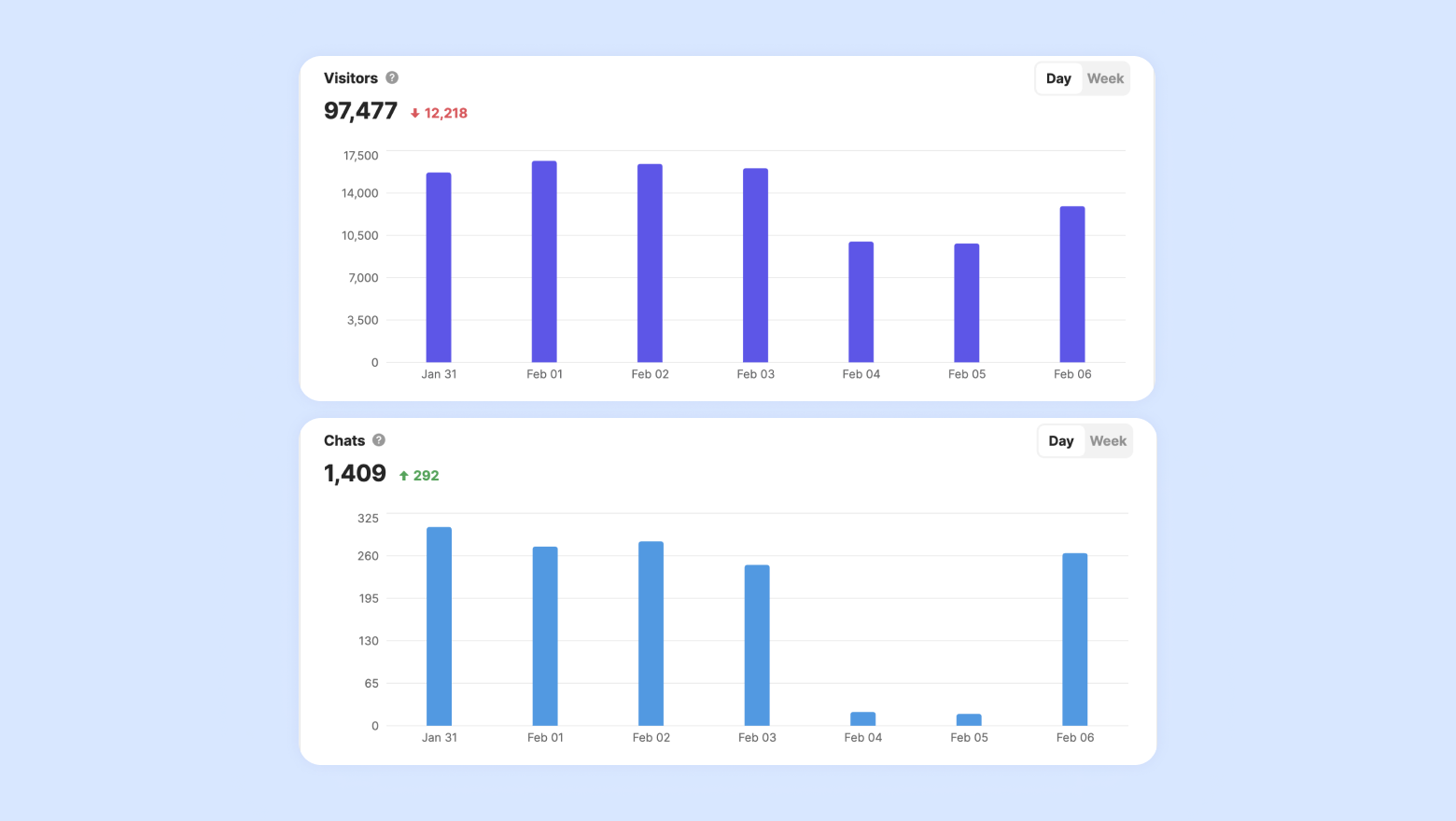 You can monitor the trends and status of your chats, and you can make sure that no chats are left to fall between the cracks. (→ Learn more about chat status)