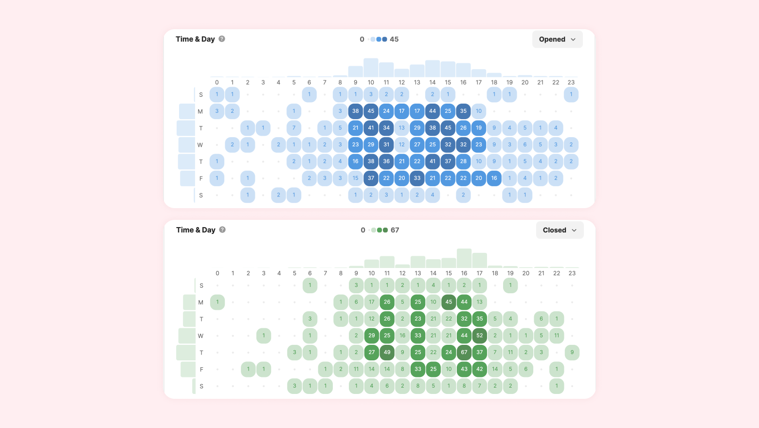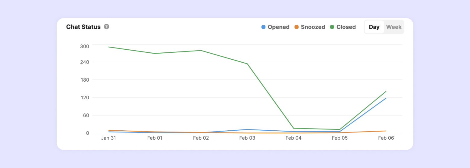 Check the distribution of opened/closed chats that occurred over a set period of time and date