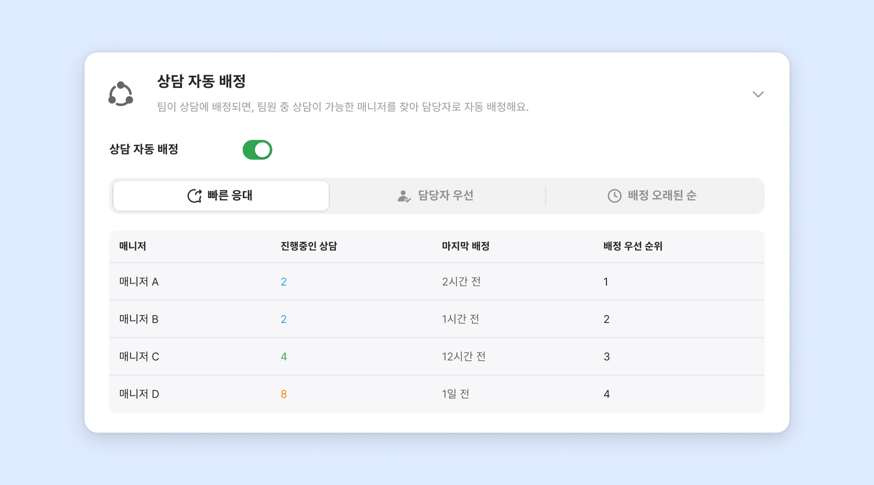 ChannelTalk’s auto-assignment feature helps your team respond faster by distributing chats based on each operator’s current workload and assignment history.