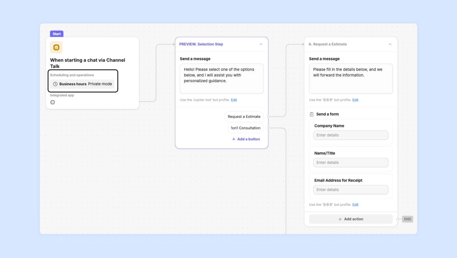3. Configure Input Form: Create an input form to collect necessary details such as product name, color, and contact information, along with the message you want to guide.