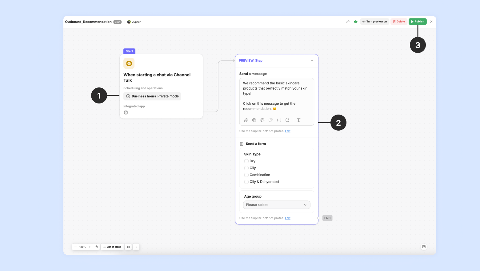 2. Configure the target audience and operational conditions, then proceed with sending or publishing.