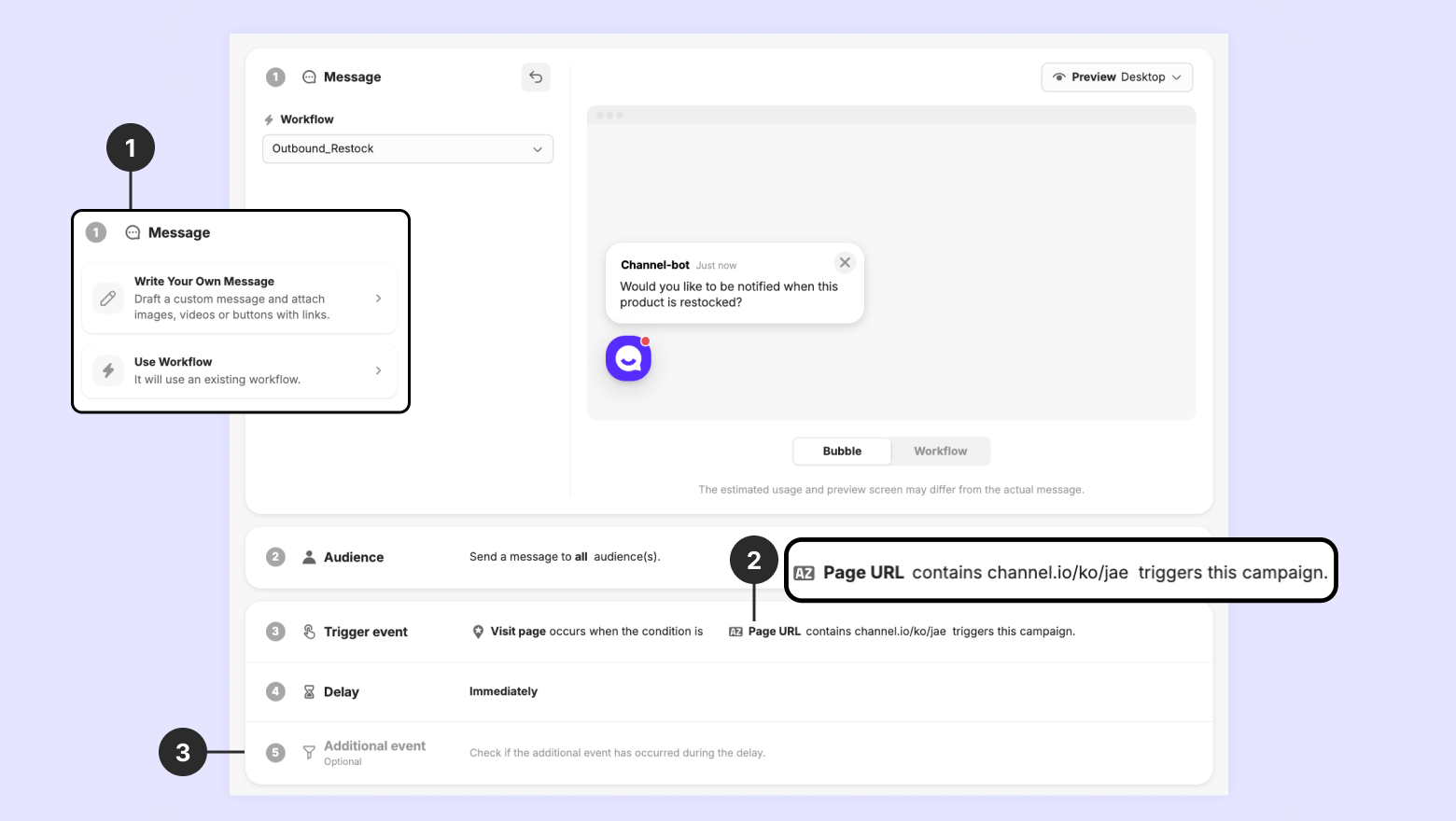 1. Choose between a one-time marketing message or a campaign based on your needs, select 'Channel Talk Message' as the delivery method.