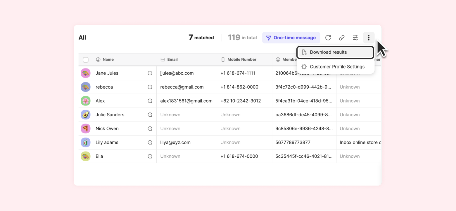 You can search for customers quickly by entering their name, mobile phone number, and email in the search bar.