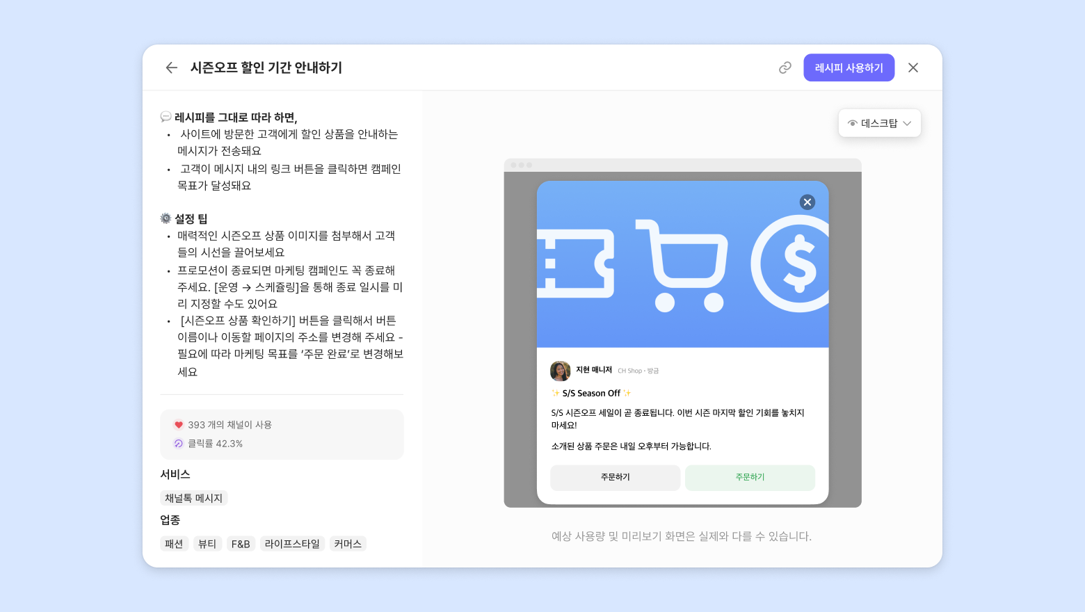 Channel Talk offers a variety of marketing recipes tailored to different objectives.