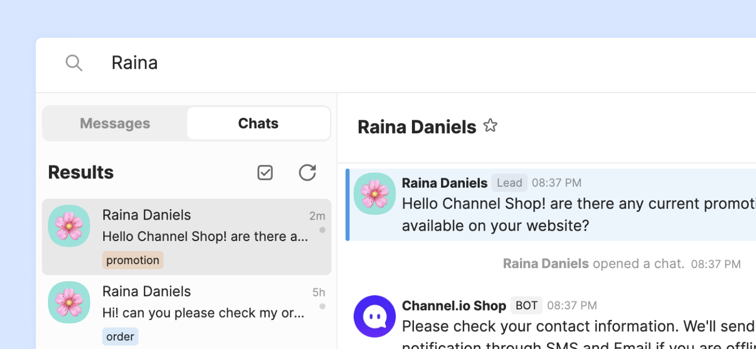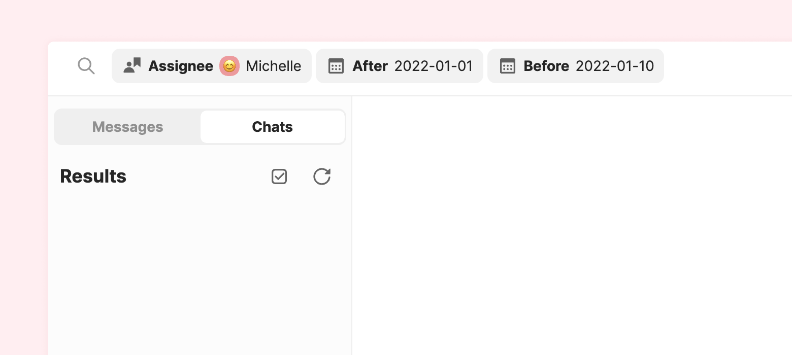 You can easily search [Chats] by assignee, follower, state, chat tag, and date.