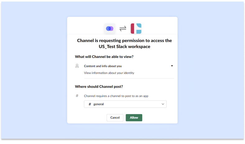 After clicking [Install], a new window should appear. Select Slack workspace & Slack channel to send the notification.