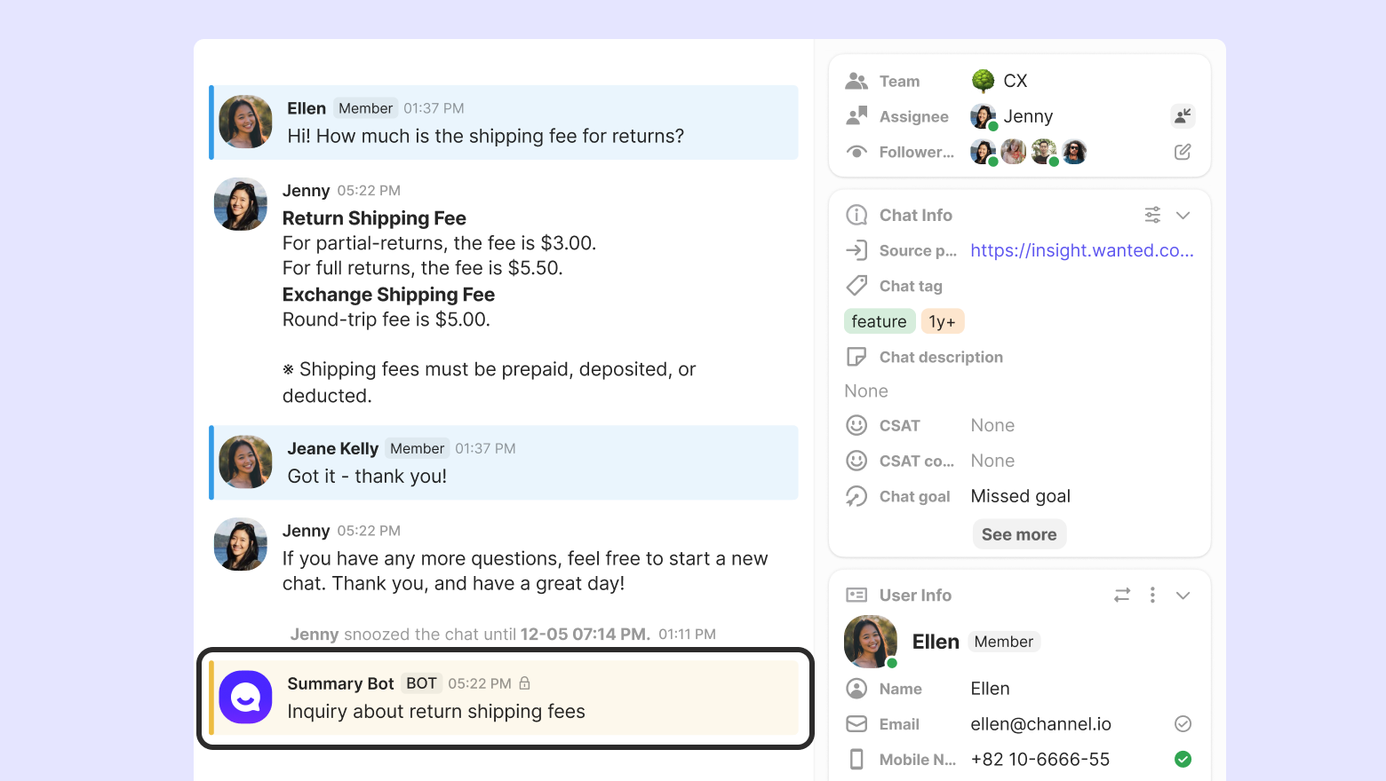 You can also set the summary to apply when a chat is snoozed, not just when it's ended.