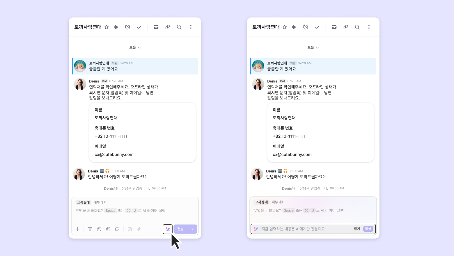 AI automatically summarizes the conversation when a chat or phone call is ended or snoozed. This helps reduce post-chat processing time, allowing you to quickly understand key points and manage conversation history more efficiently.