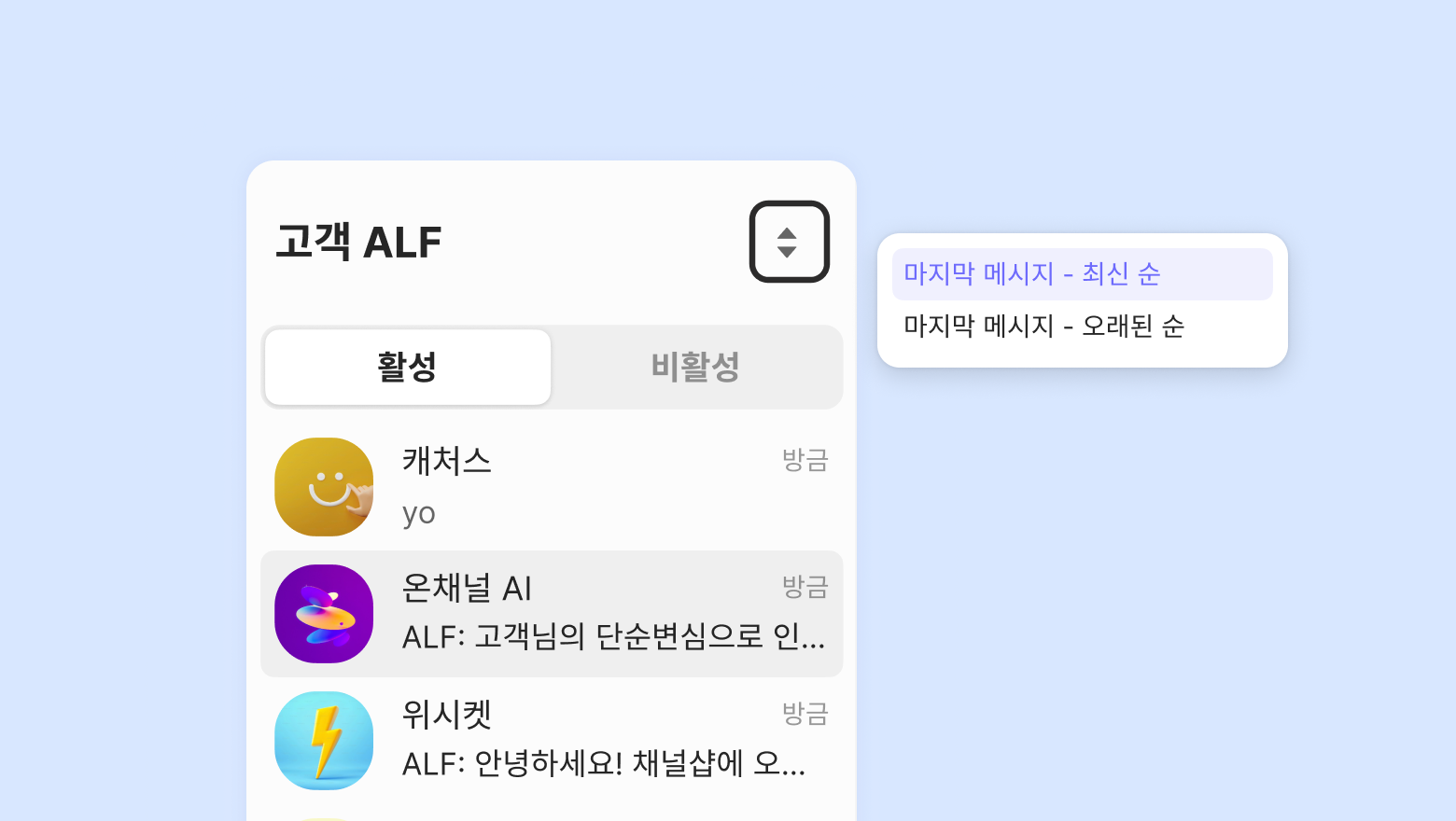 It is divided into [Handling] and [Not handling] depending on whether ALF is currently handling the chat.