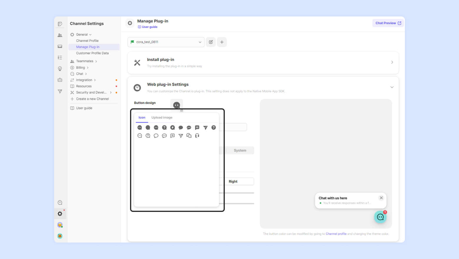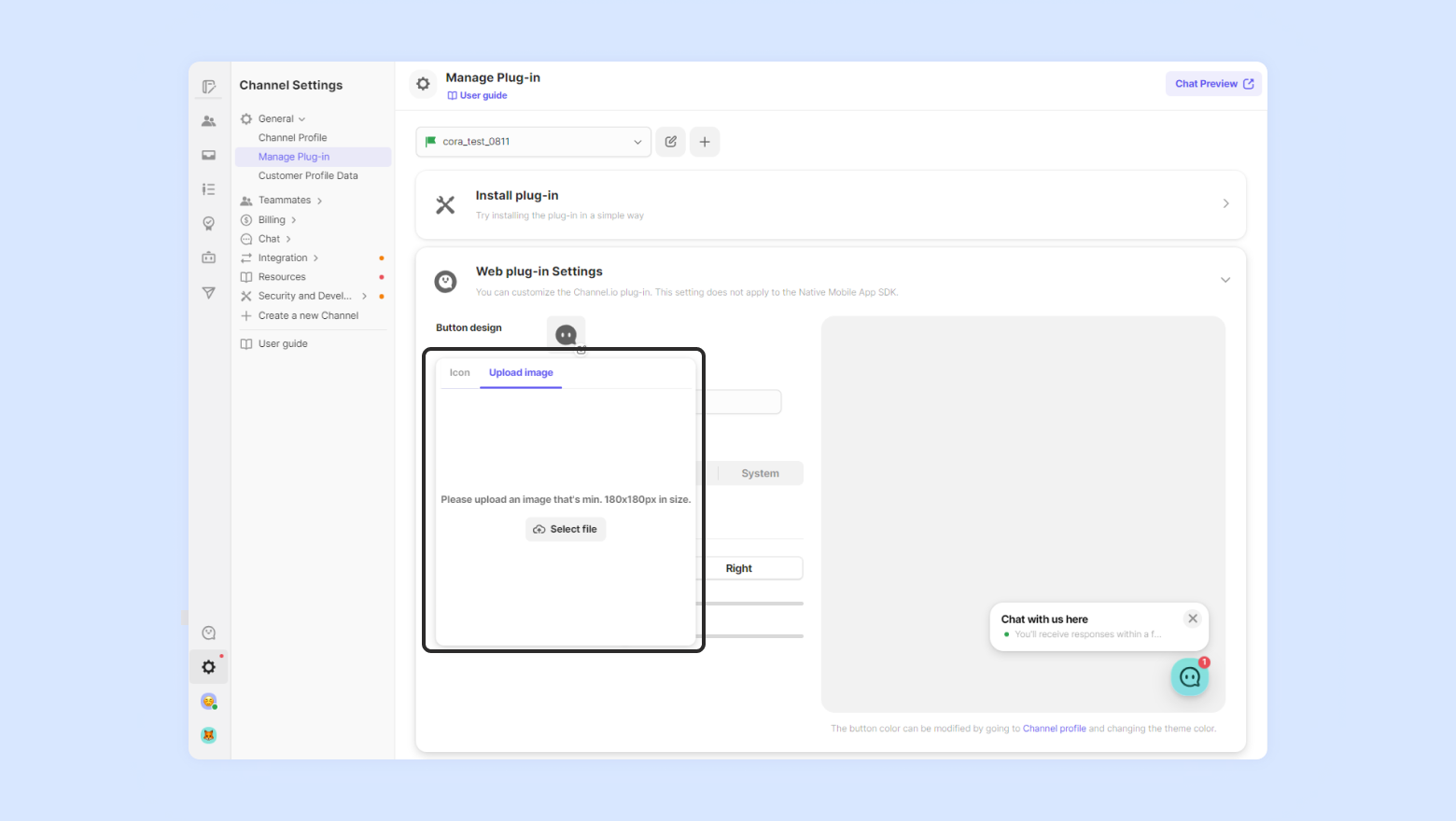 If you want to replace the default chat button with an image that reflects the personality of your brand, you can upload a customized image to use.