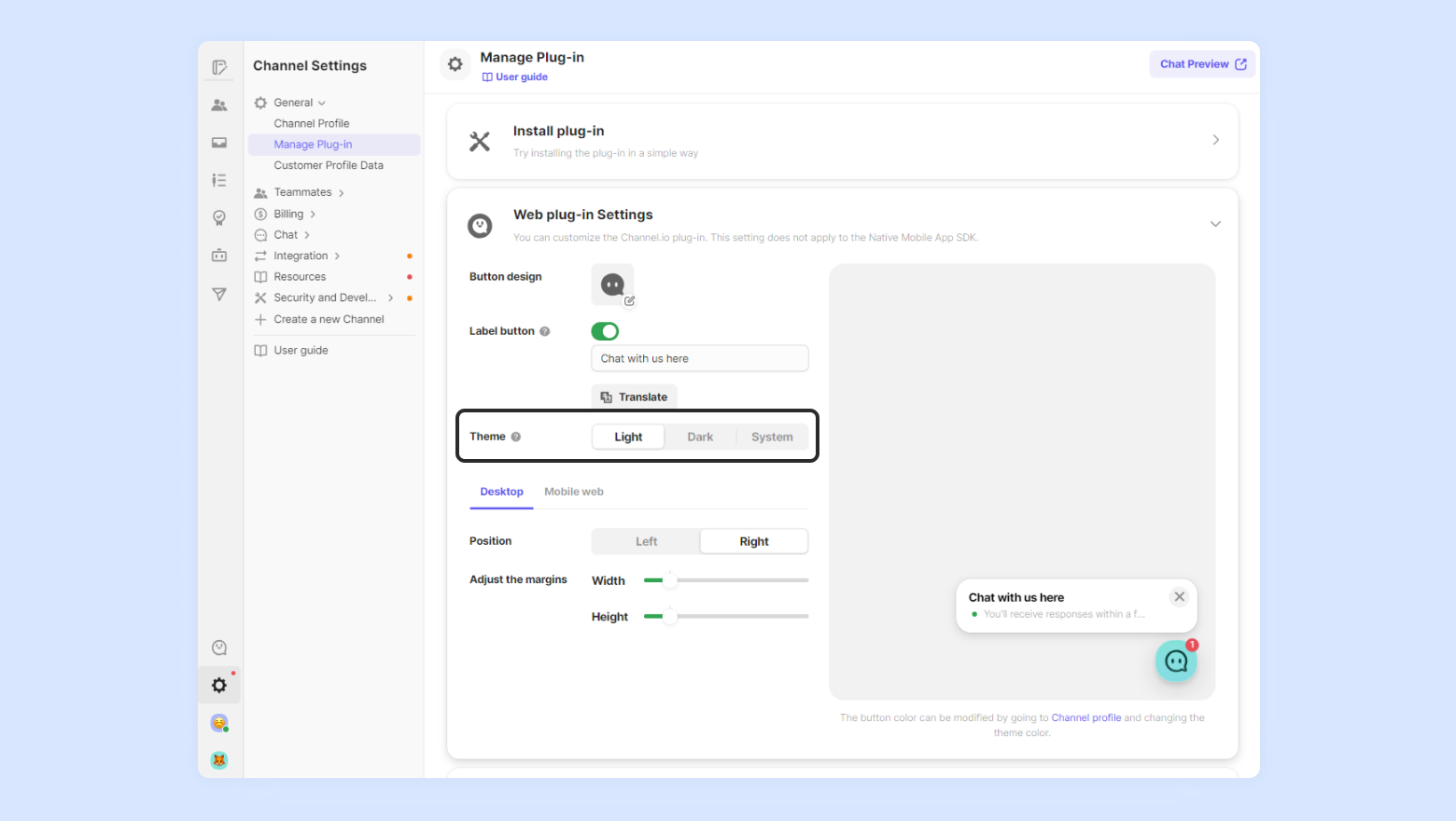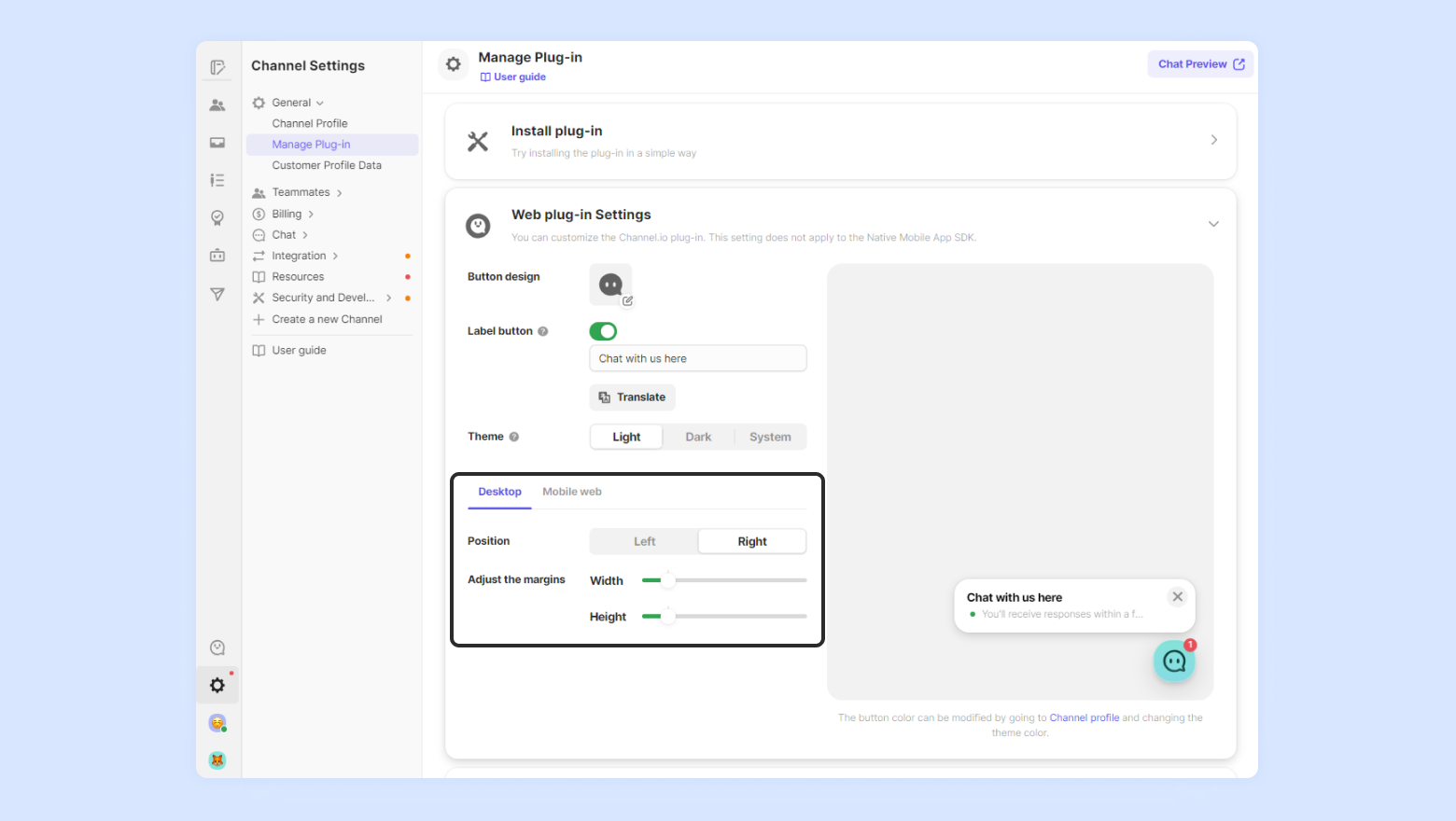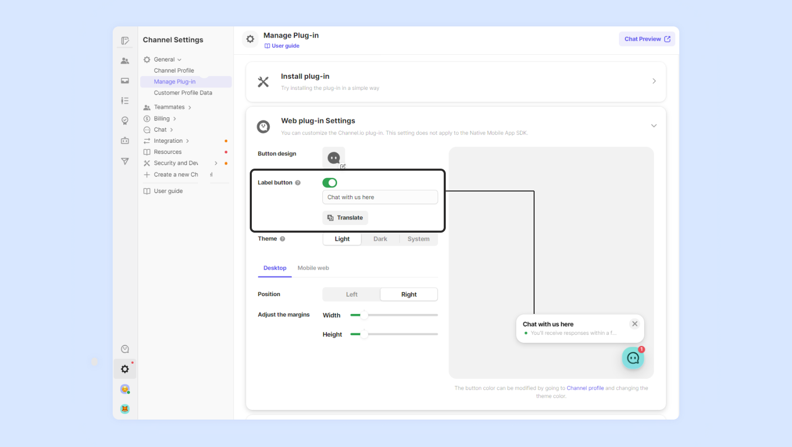 Channel Talk’s vision is to connect the customer with your company simply and easily. To fit this vision, we believe it is a pinnacle that the customer’s experience is not overly intruded upon and that interactions are available on the customer’s terms. Allowing label buttons constantly makes the experience cold and over-intrusive.
