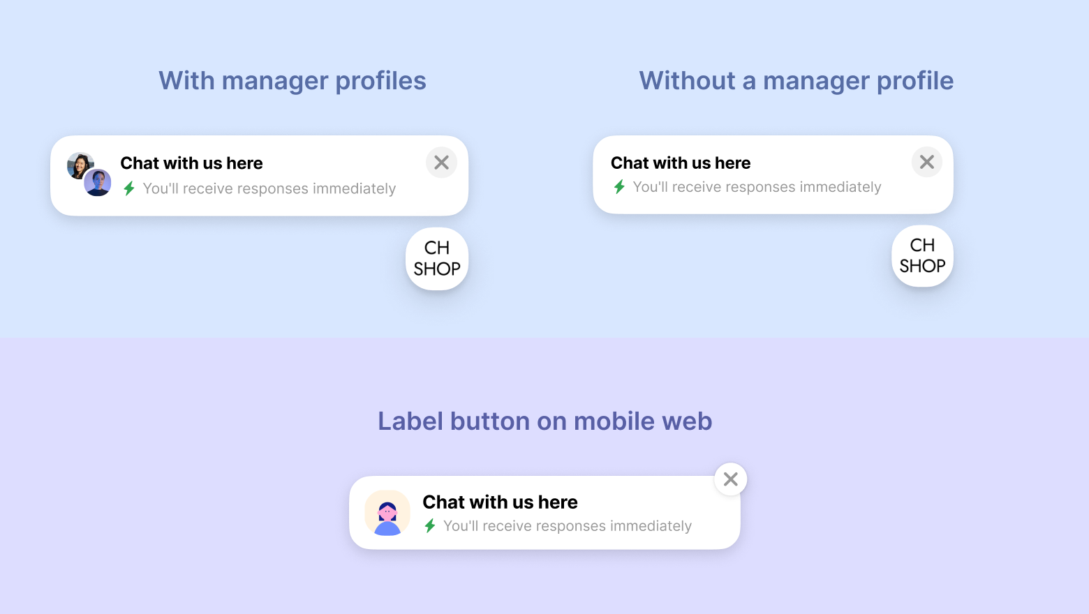 If there is only one manager available or all available managers are using the channel profile for live chat, the label button does not show the manager profile.
