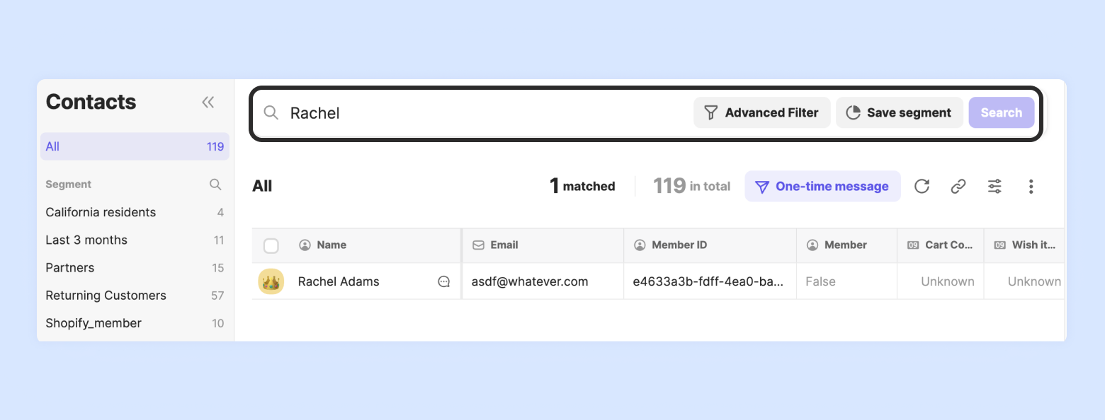 You can search for customers quickly by entering their name, mobile phone number, and email in the search bar.
