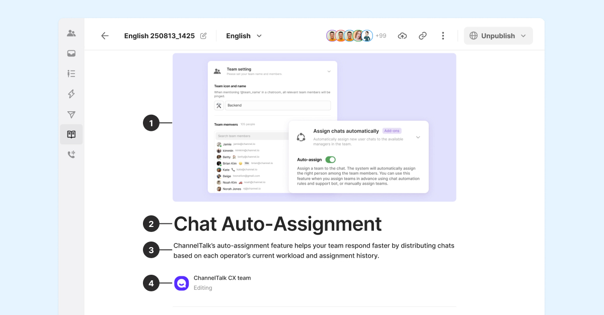 4. Close: Hides the entire chat window, including the article. You can click the Channel Talk button again to restore the full screen.