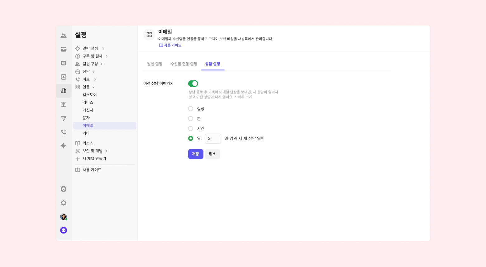 Go to [Channel settings] - [Integration]- [Email] - [Inbox integration settings].
