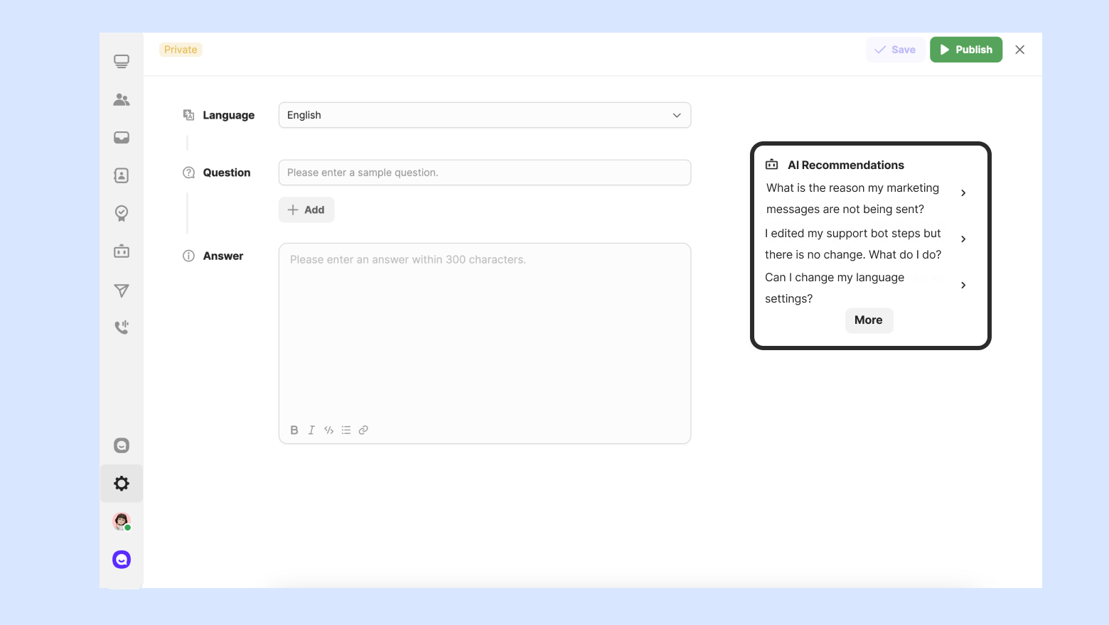 Team members that do not have inbox access permission cannot create or edit FAQs.