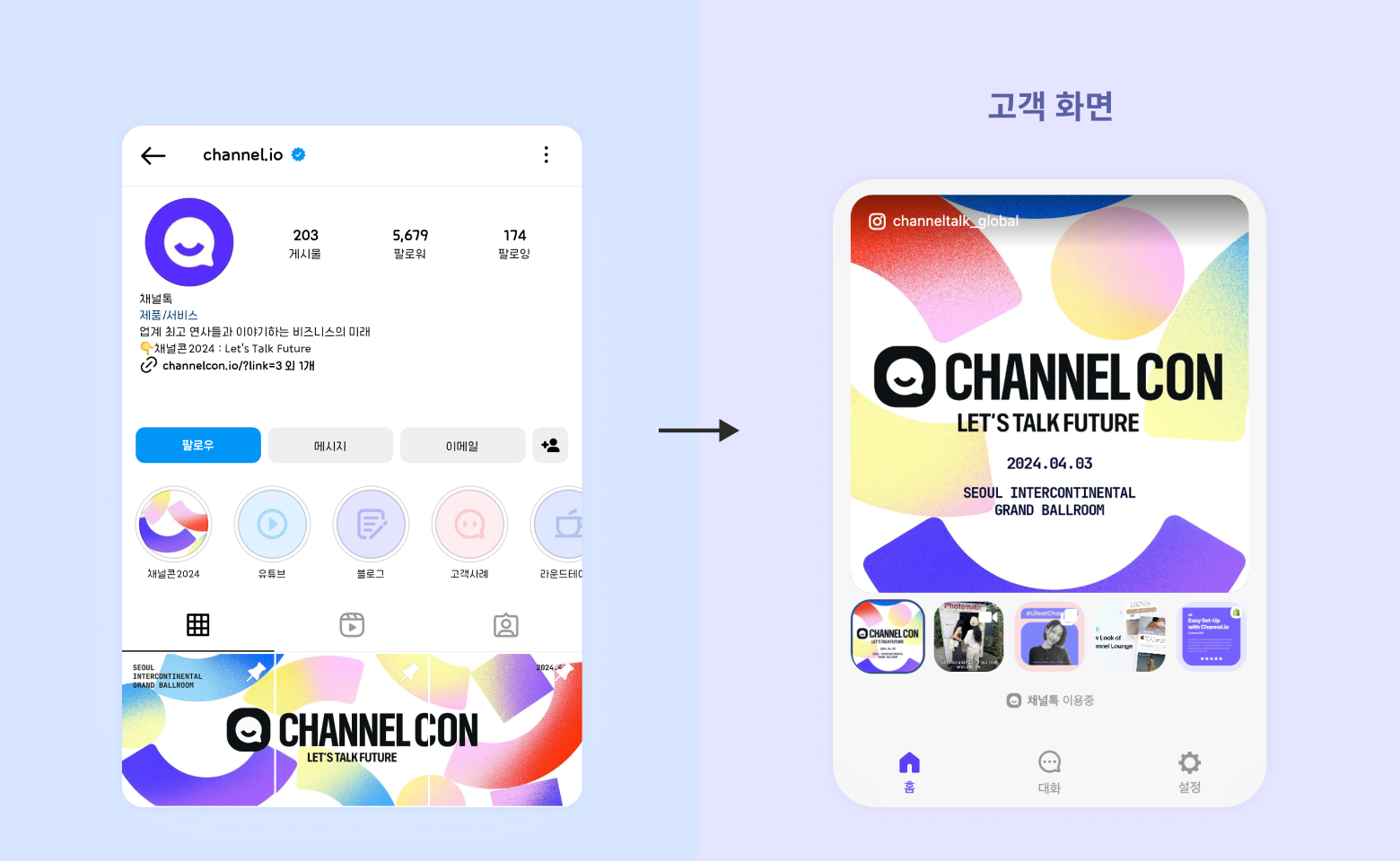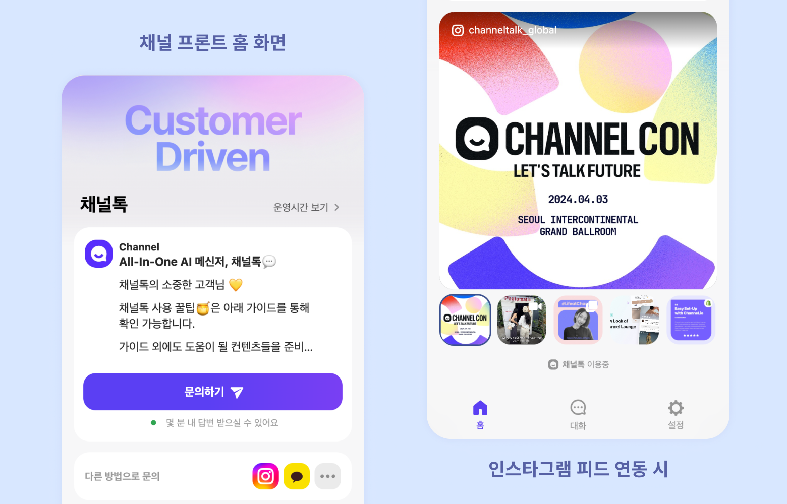 Even if customers don't follow your brand directly on Instagram, you can keep them updated anytime right from the Channel Talk Home Screen.