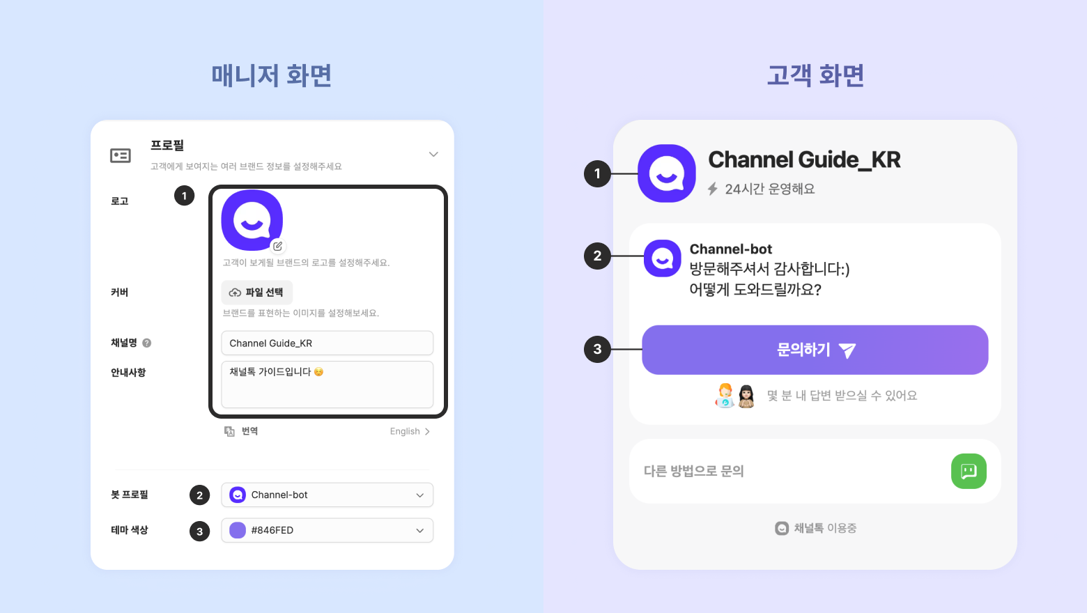 When you first install Channel Talk, our default bot will greet your customers. You can customize this bot's profile and greeting to match your brand's voice, making interactions much more friendly and personal.