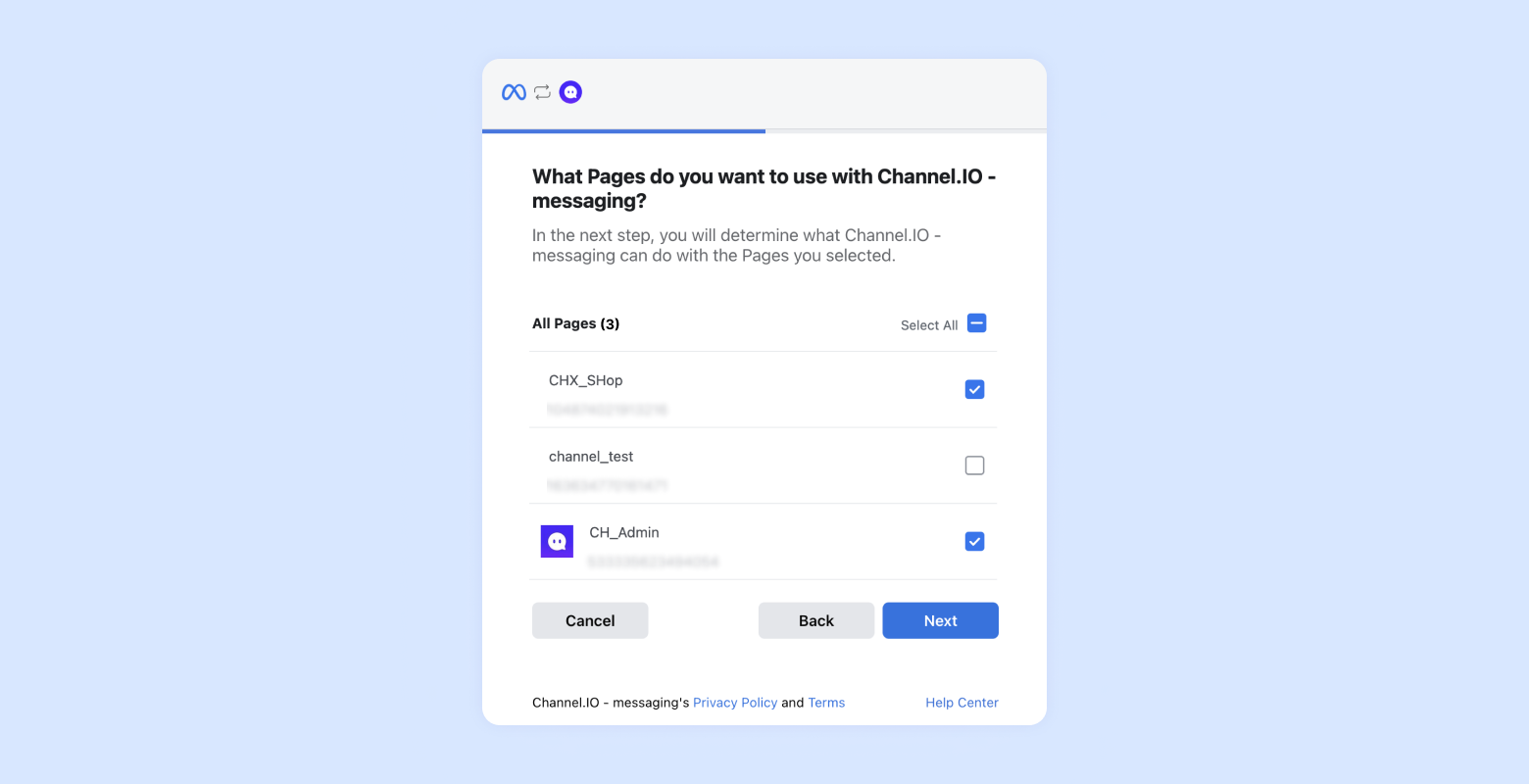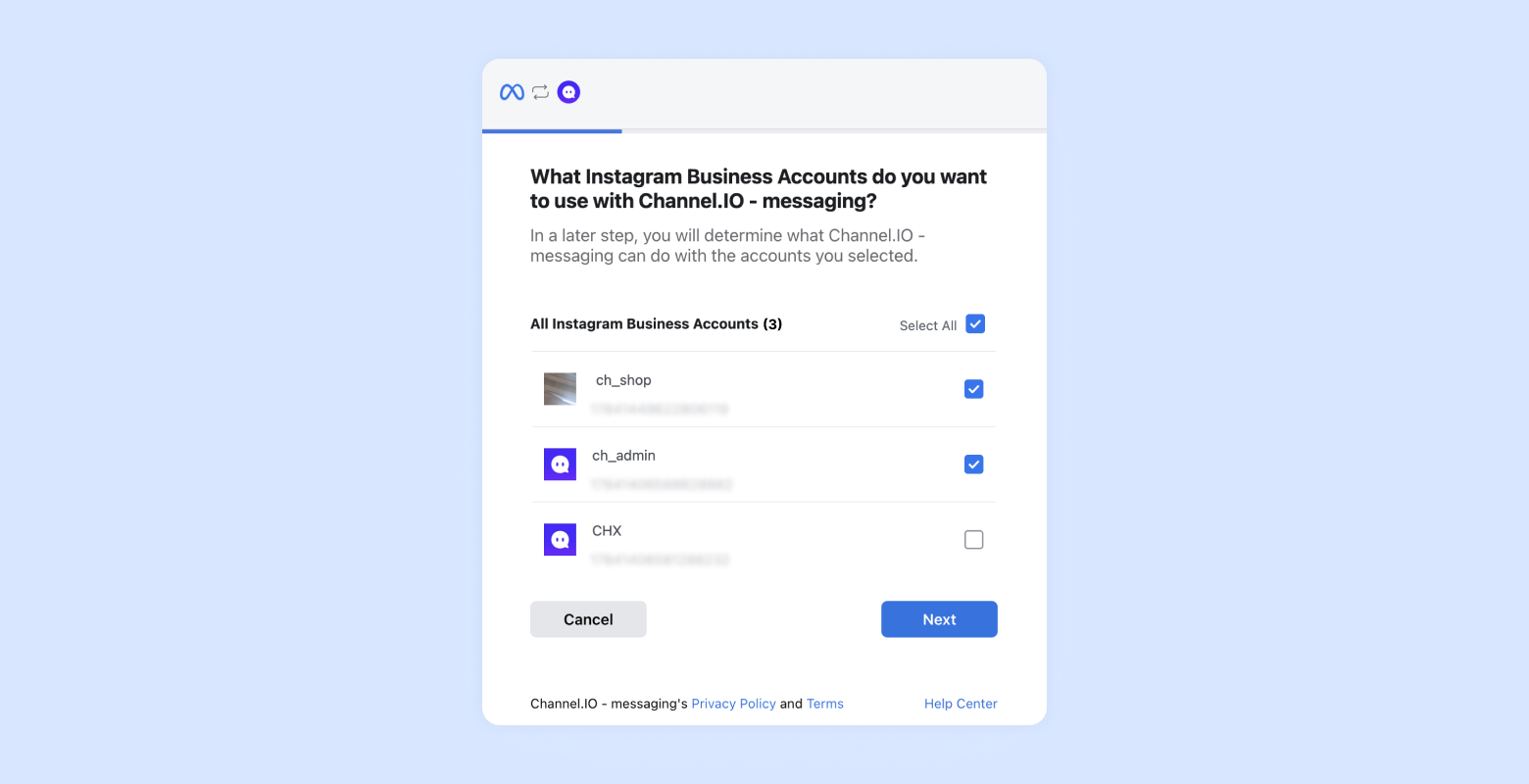 Select the Instagram professional accounts you wish to integrate with your channel.