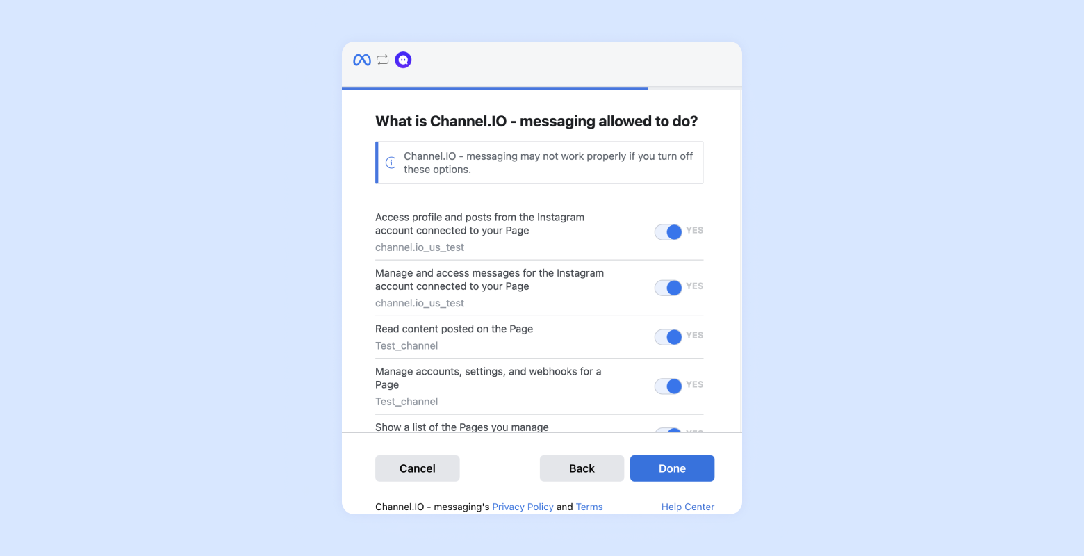 If you do not re-verify your account after 90 days, the integration will be disabled, and any messages from Instagram will no longer be synced with Channel Talk.