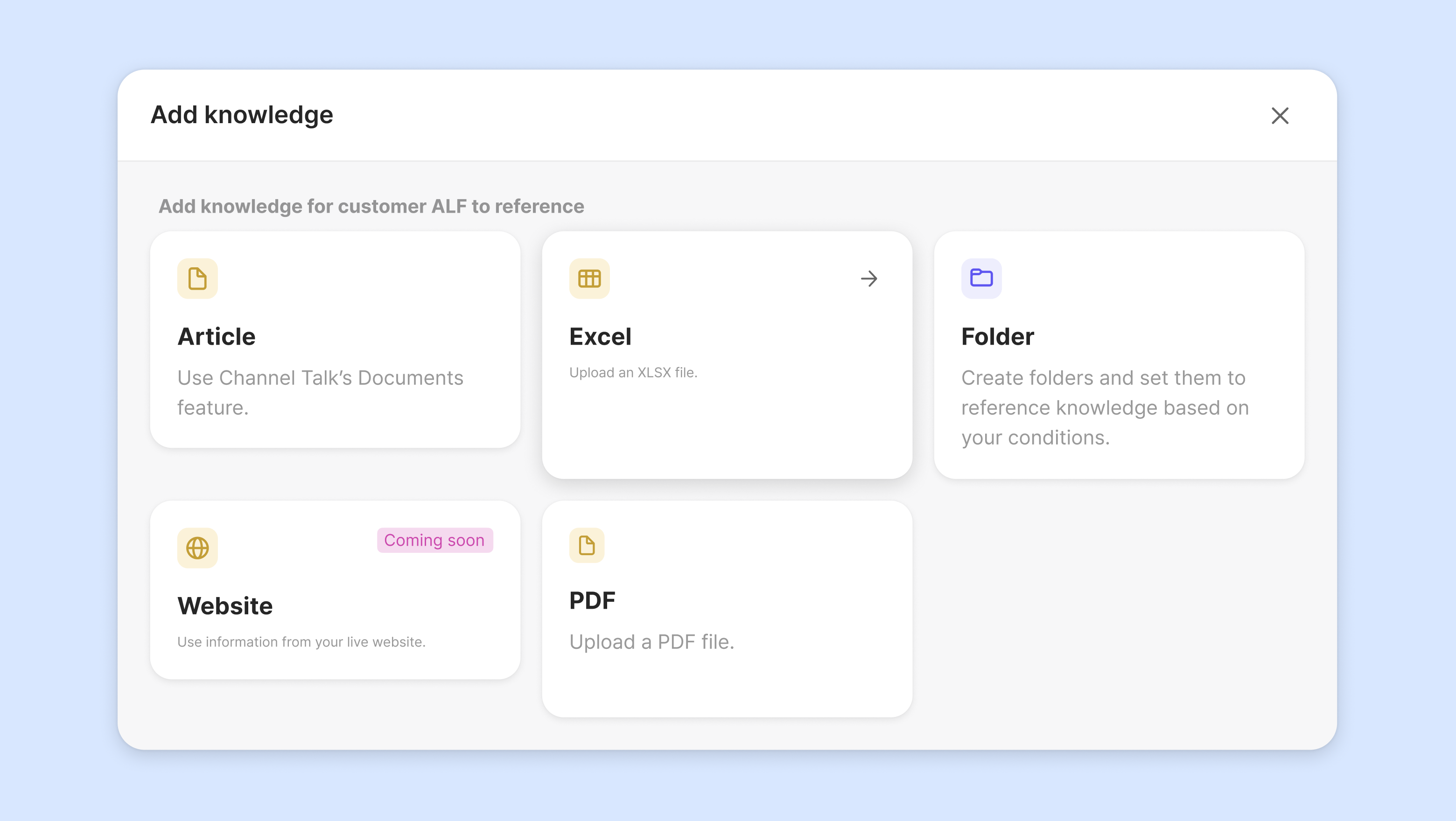 Knowledge is a space for collecting and managing various materials—such as documents, files, and websites—that the ALF can reference.