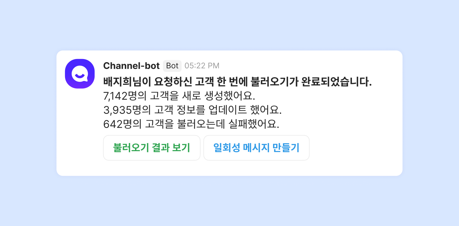 Once the import is complete, you(requested team member) and the owner will be notified via a message from the chatbot.