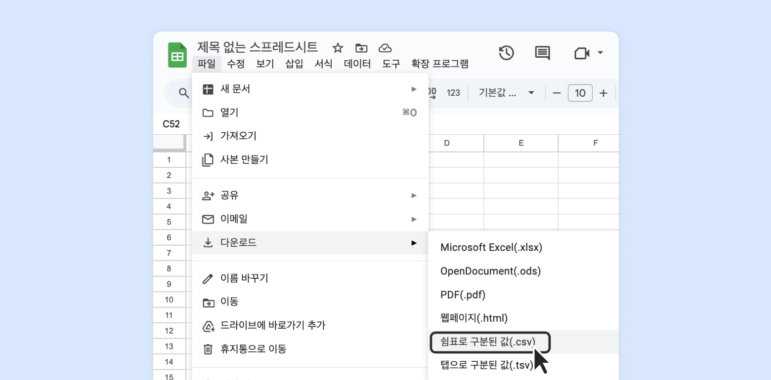 From the top menu, click [File] > [Download] > [Comma Separated Values (.csv)].