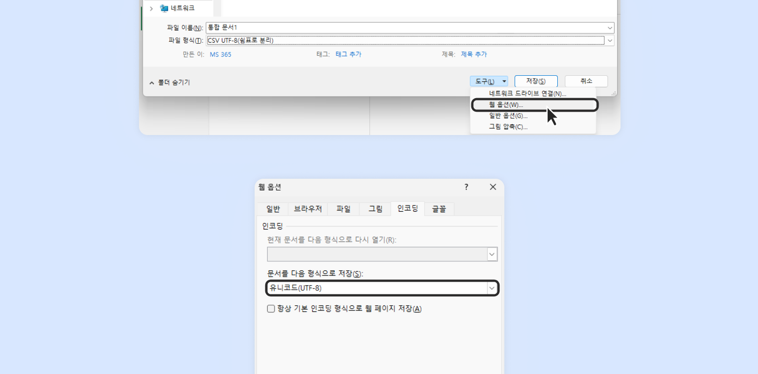 Go to [Tools] → [Web Options] → [Encoding], and select 'Unicode UTF-8' before saving.