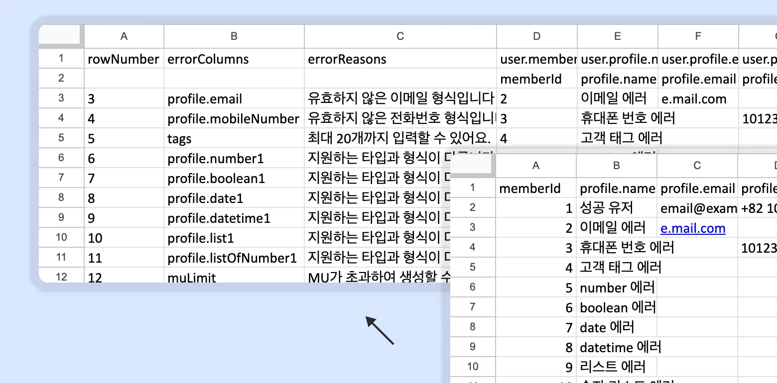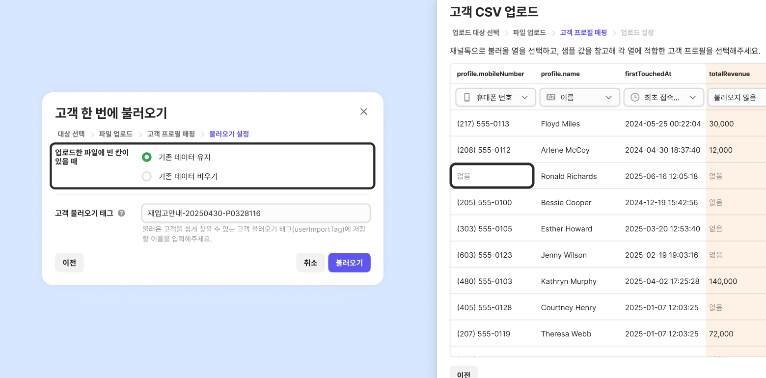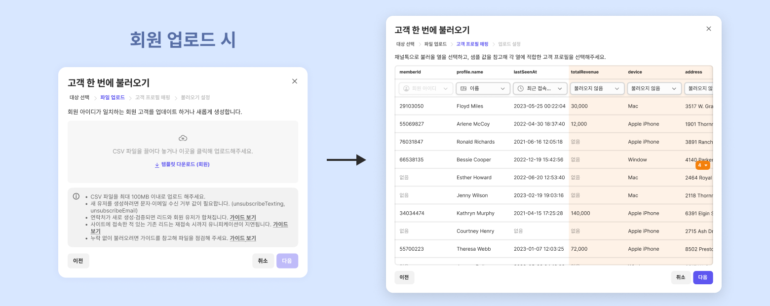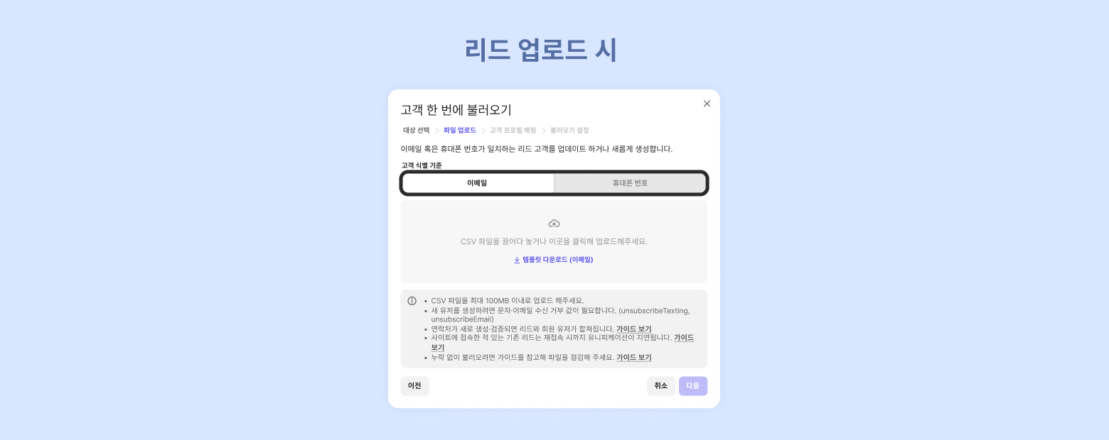 When you upload the file, ChannelTalk identifies existing customers by their 'member ID'.