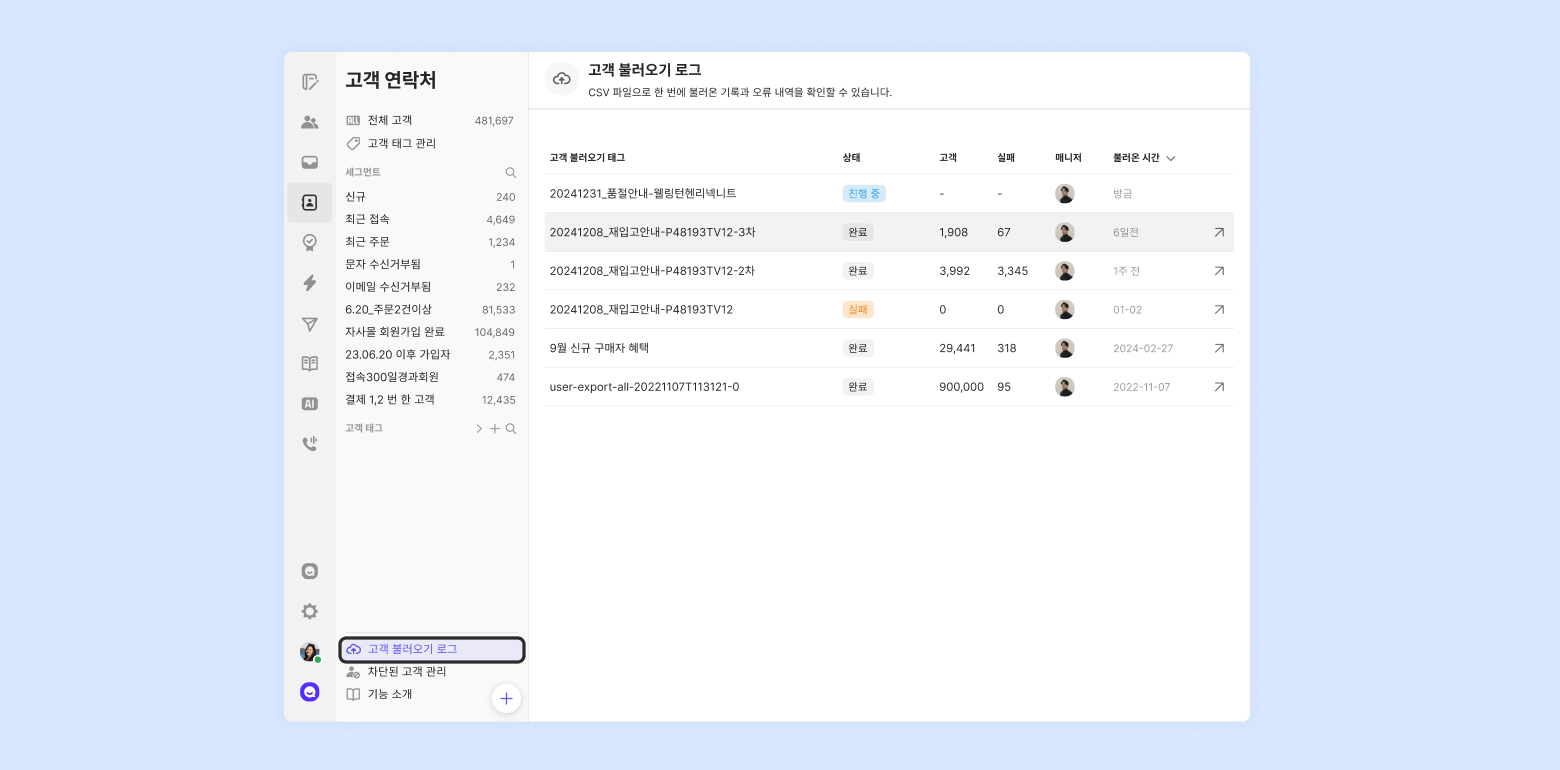 If you're using the Enterprise plan and security package, you can also check the bulk customer import details in [Activity Log] → [Edit customer info].