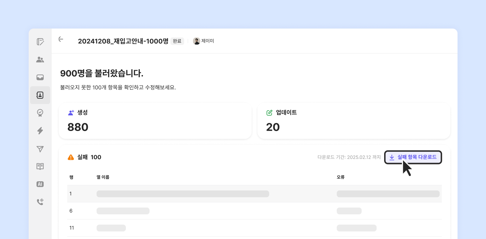 If there are any items that failed to import, you can download a separate Excel file to edit them, convert the file to a CSV, and re-upload it.