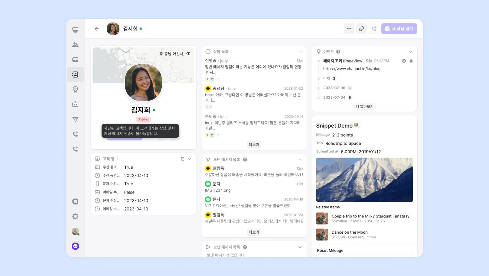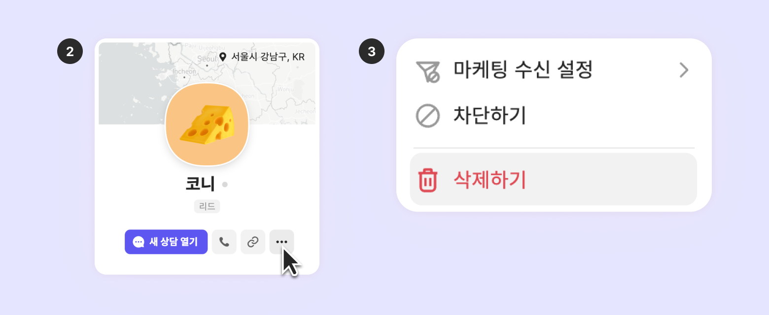 Delete: The customer’s profile is permanently removed, and Channel Talk automatically deletes their data.