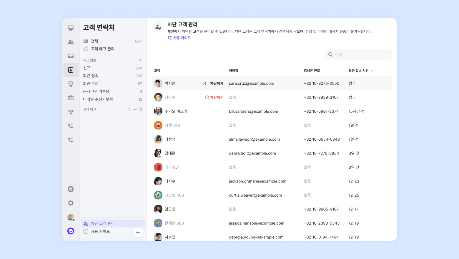Once blocked, these customers will no longer appear in your contact list. You can only find them under [Blocked Customer Management] located at the bottom left of the contact page.